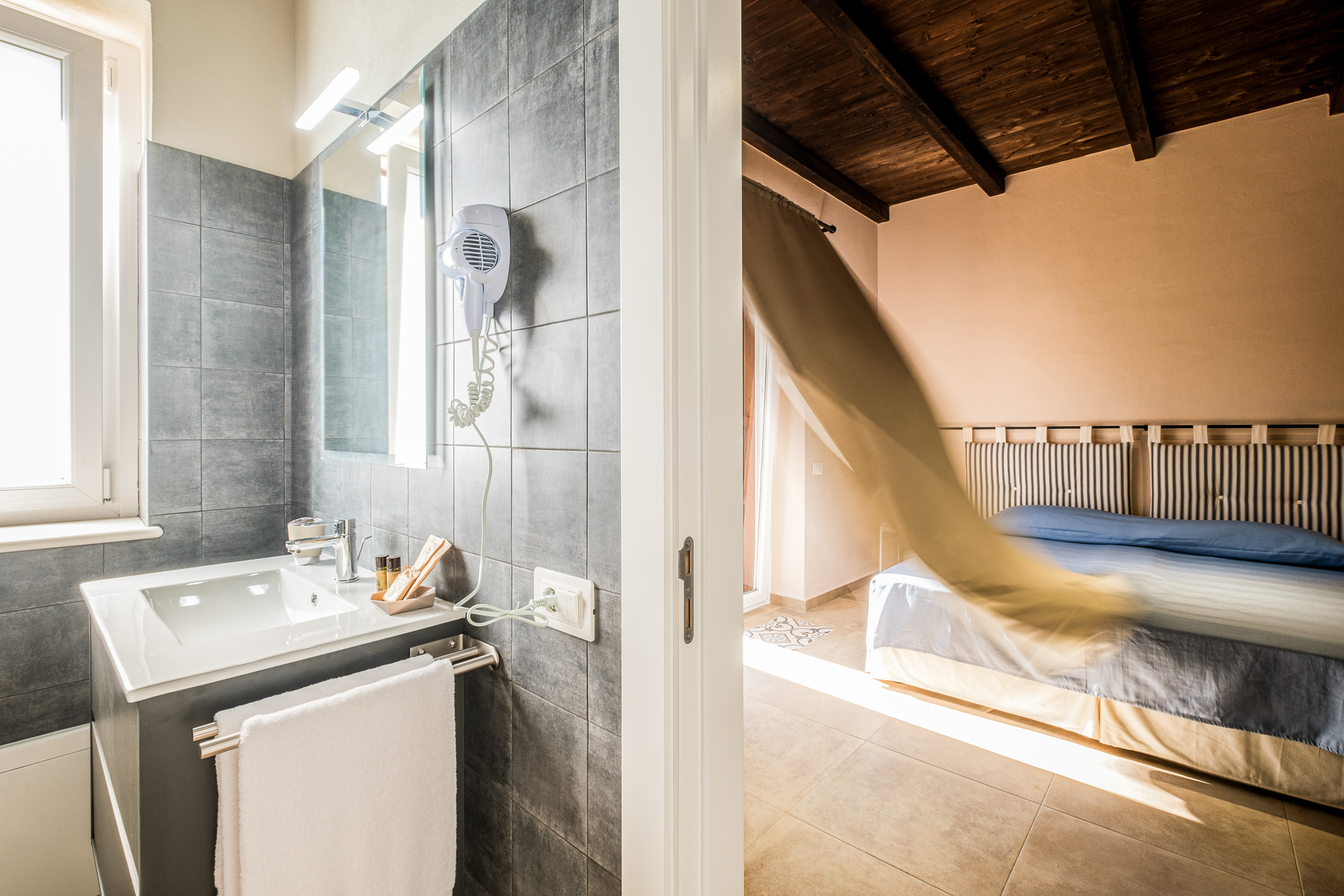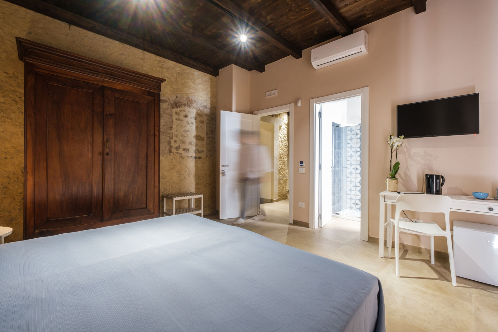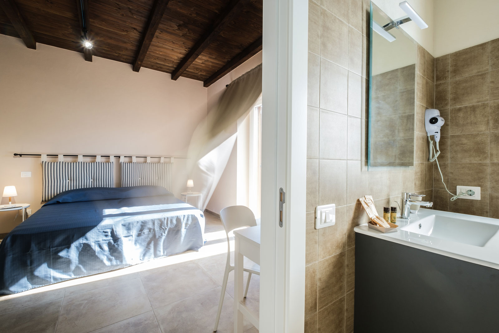 Disponiamo di due camere con letto matrimoniale “Deluxe” di circa 22/24 mq complessivi a piano terra, esposte a sud ed est, con uscita/balconcino di accesso nel giardino comune. Dotata di tutti i servizi compresi in tutte le stanze della residenza, Smart Tv 32°,WiFI, bagno in camera con ampia doccia, cassaforte, climatizzazione, frigobar, etc..